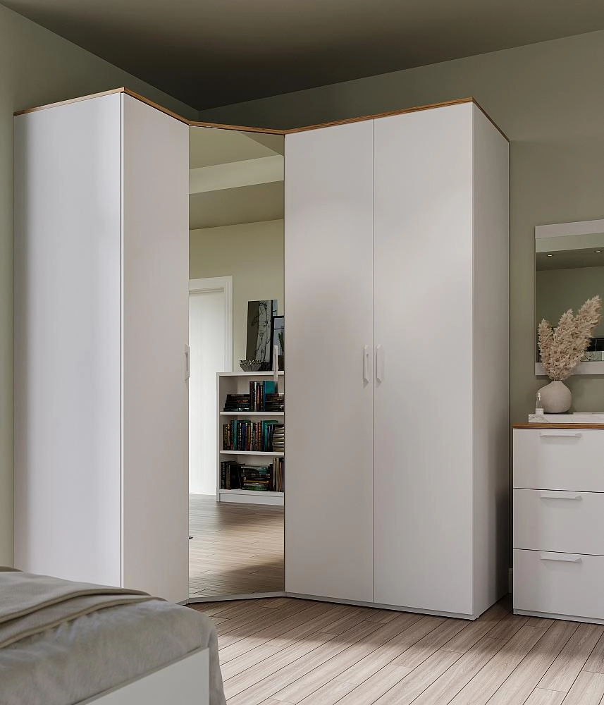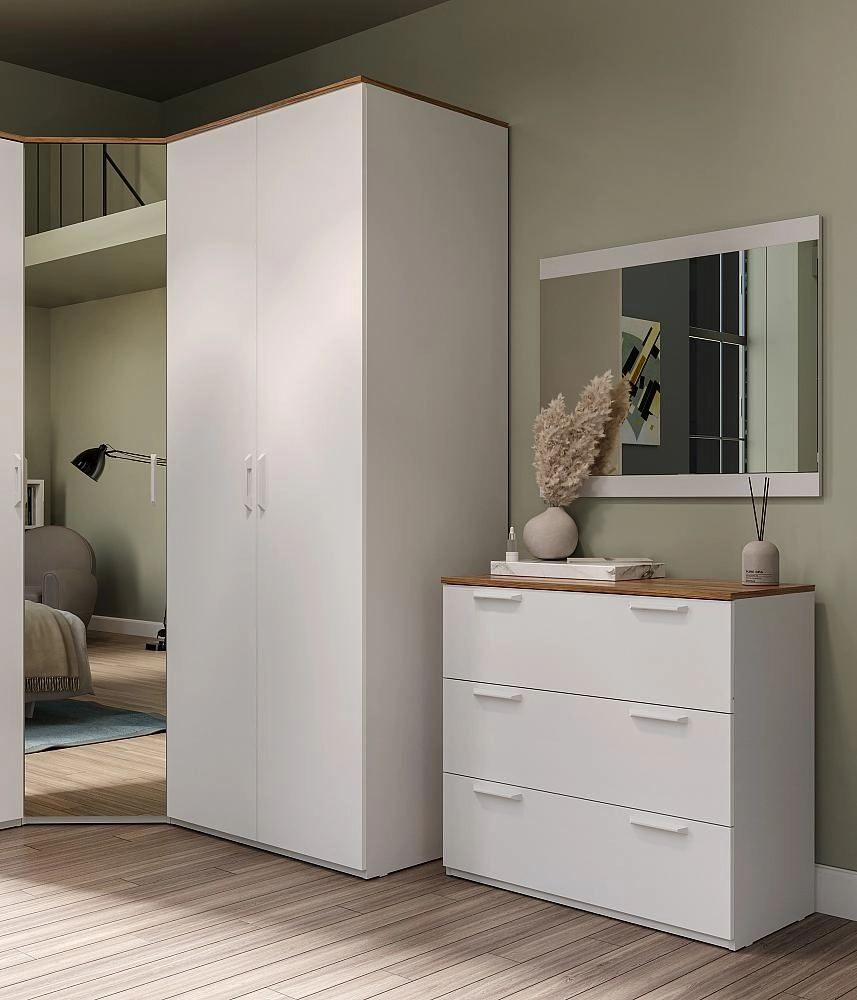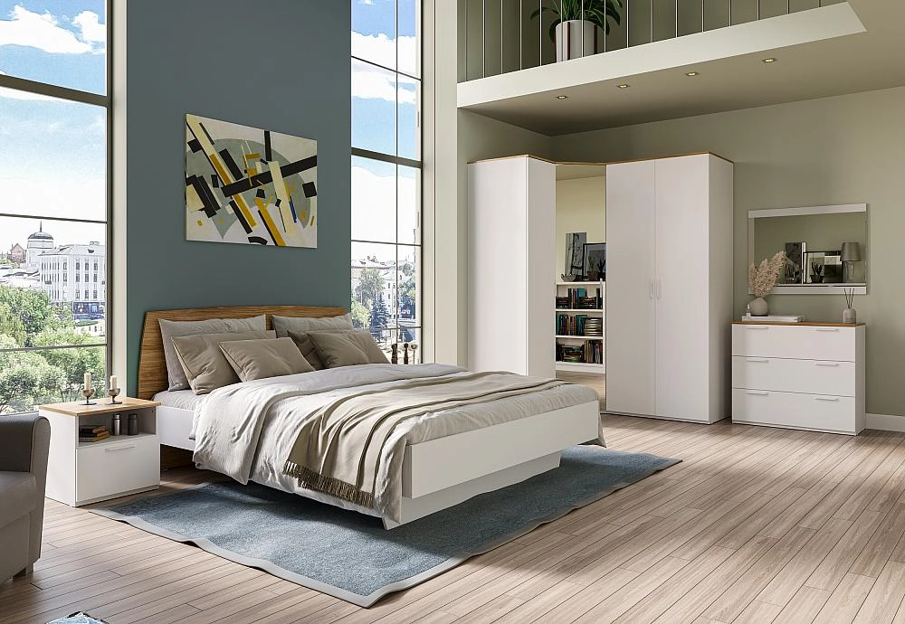 Спальня «Altea» - матовые белые фасады на белом корпусе делают мебель воздушной.